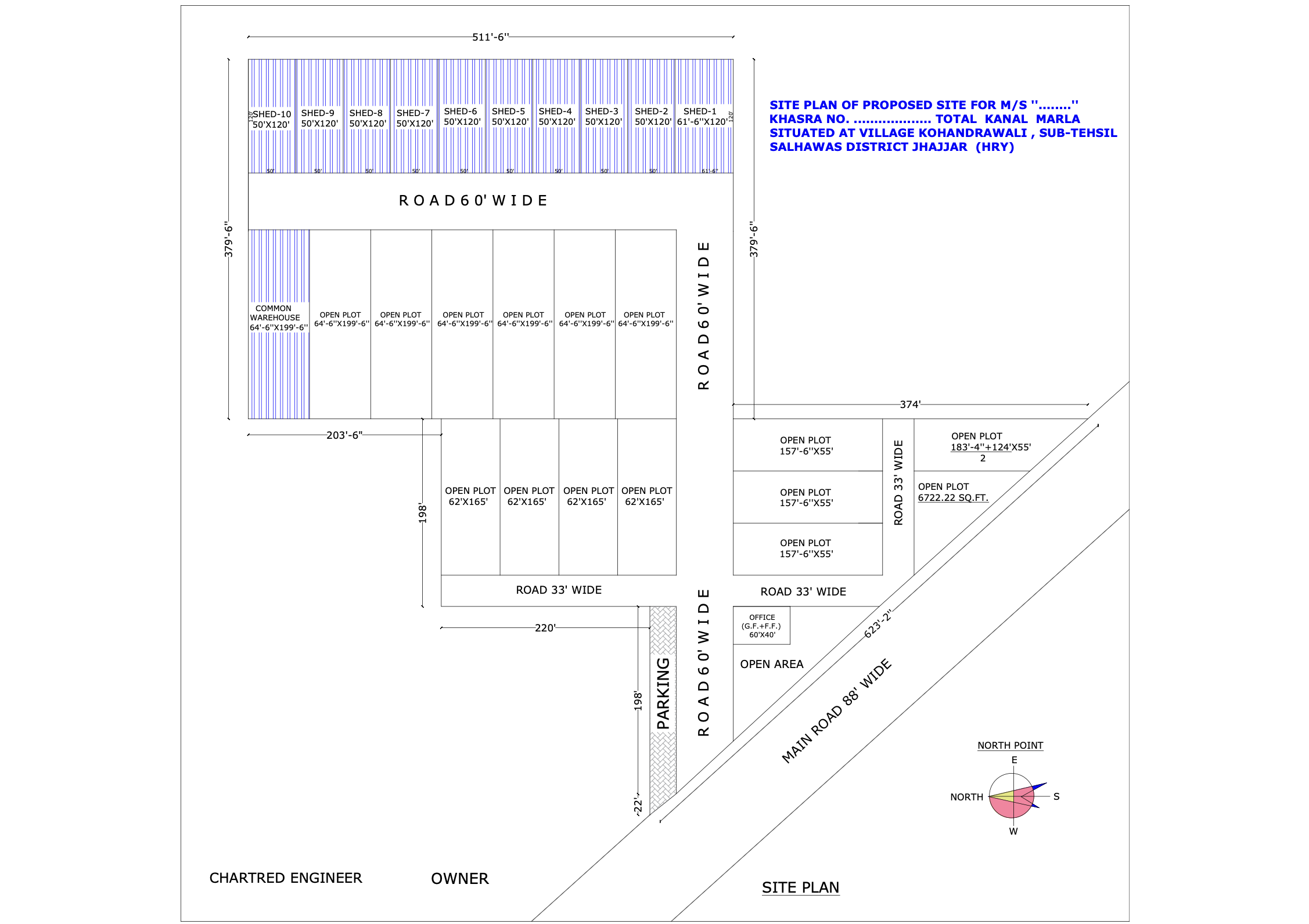 18M industrial-grade roads designed for 20 MSA load with 15-year life | RCC boundary wall with secure gated access & surveillance provision | Advanced RCC storm water drainage to ensure zero water logging | Pressurized 24X7 water supply network using DI pipelines | CPHEEO-compliant sewerage network with STP & ETP integration | Government-spec electrification with HVPN/UHBVN/DHBVN approved layouts | LED street lighting with high masts and octagonal poles for full coverage | Rainwater harvesting systems for sustainable groundwater recharge | Dedicated parking bays for trucks, visitors, and employee vehicles | Fully equipped labour hostels and sanitation facilities on-site | Compliance with Haryana PWD/MoRTH/CPHEEO specifications across all works.